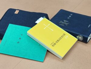 聖公会の方が聖歌集に合うカバーがあれば、とご来店。実は聖書と違って、賛美歌・聖歌のカバーはあまり種類がないのです。さて、と話しているうちに、大きいサイズの聖書カバーに祈祷書なども含めて「全部入る」のを発見。お店で喜んだのでした。