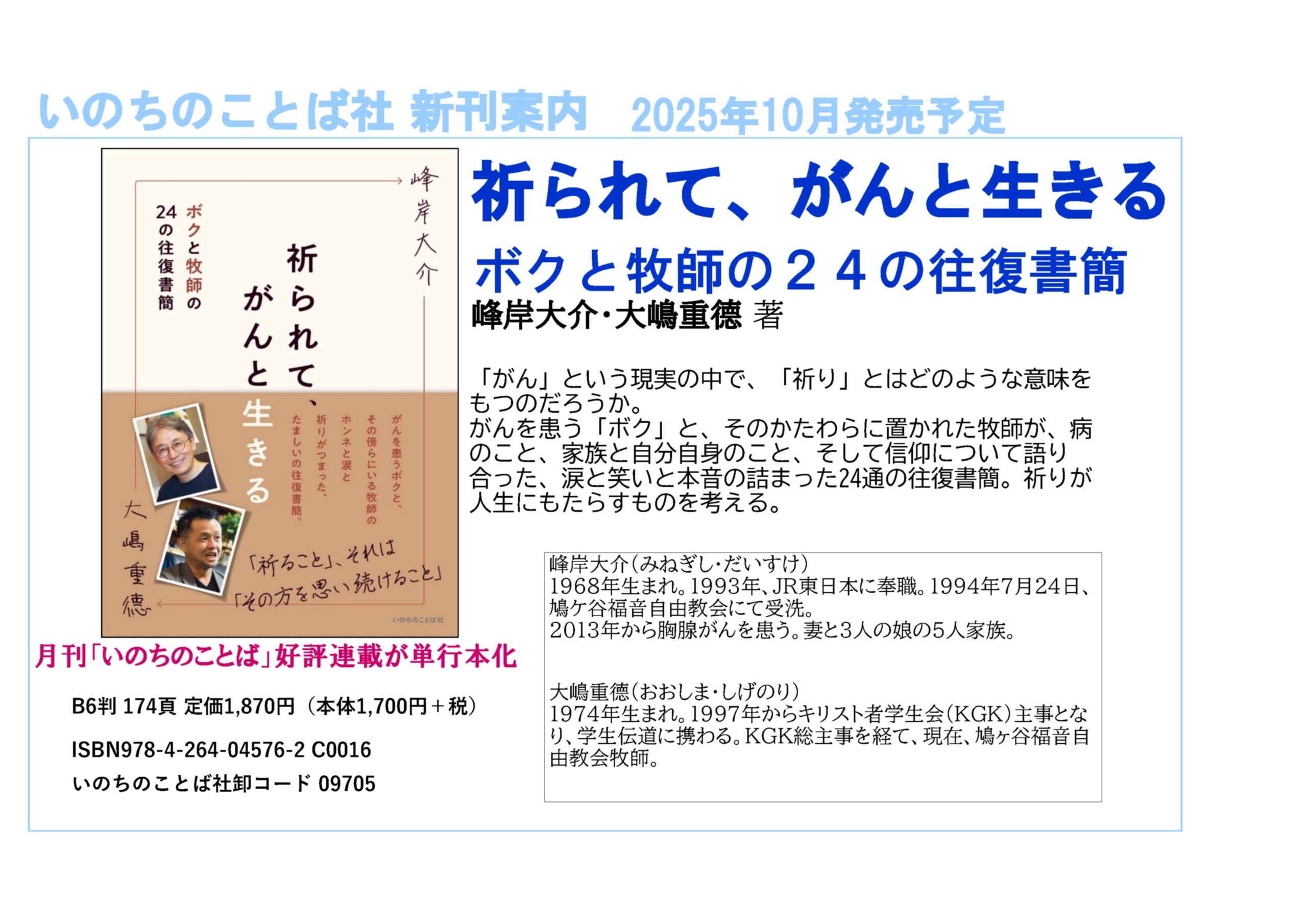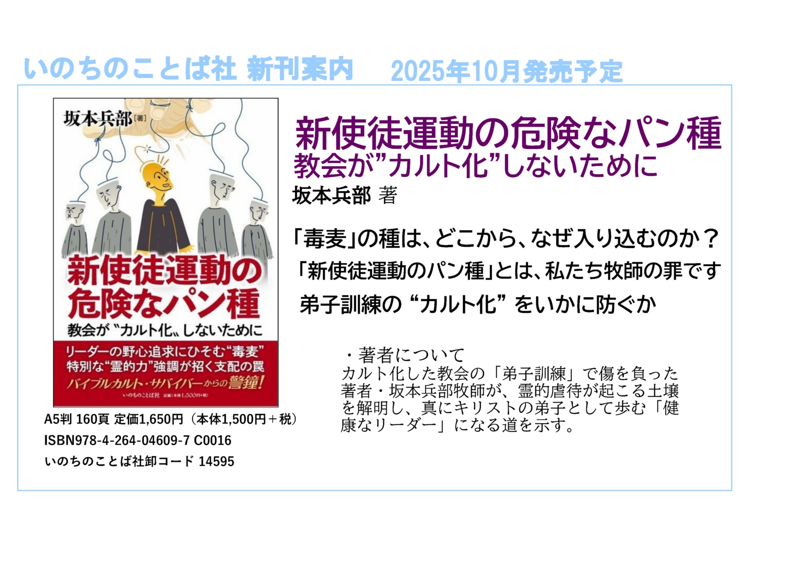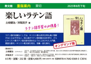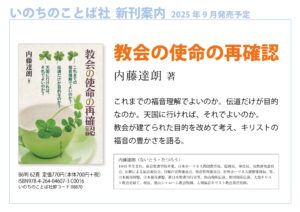 2025.08.31 2025.09.06 これから出る本|2025/8 お問い合わせ・ご予約はこちらから お問い合わせ・ご予約はこちらから 記事のタイトルとURLをコピーする Post Share 峯田敏幸さんデザインのTシャツ 前の記事 ローズンゲン外国語版 次の記事 新着のお知らせ 2025.11.25 ボンヘッファー『倫理』読書会特別企画 2025.11.15 これから出る本 2025年11月 2025.11.06 ローズンゲン日本語版2026 店頭販売開始