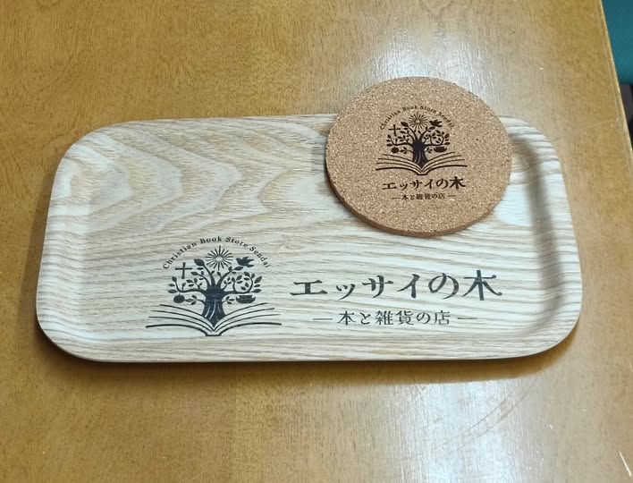 その際に「エッサイの木にどうかなと思って」と、お店のロゴが入ったトレイとコースターをお持ちくださいました。感激です!