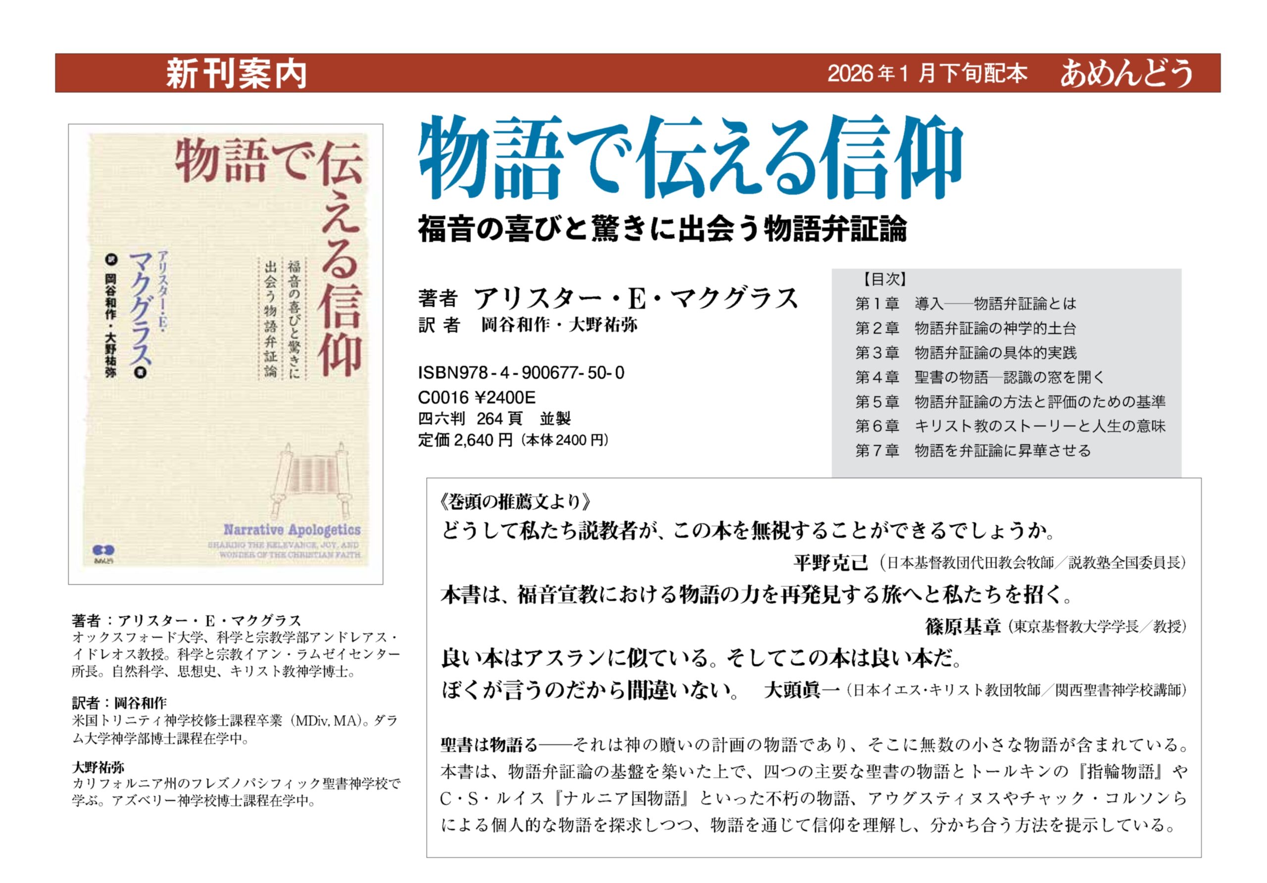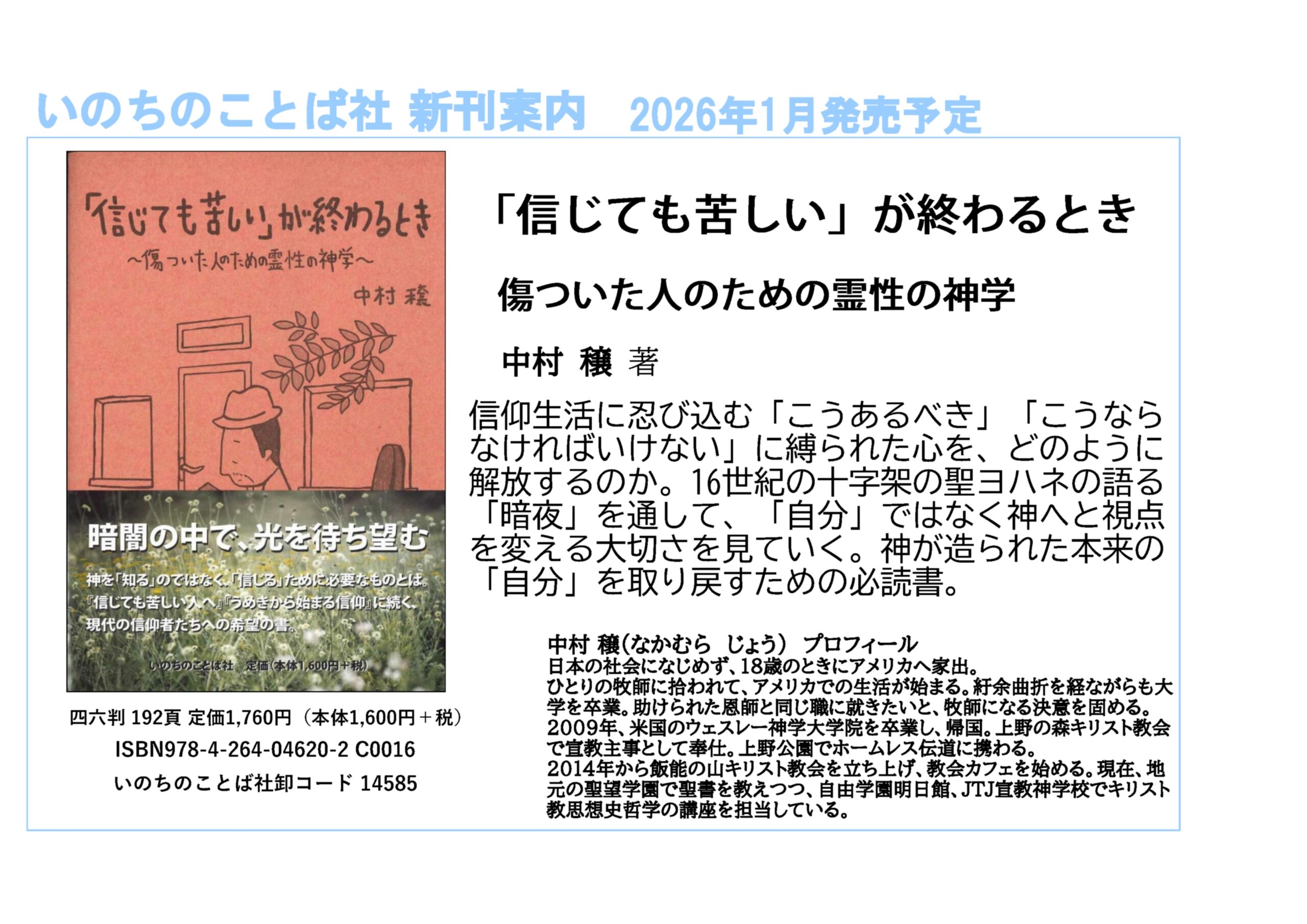 2026.01.23 これから出る本 2026年1月 お問い合わせ・ご予約はこちらから 記事のタイトルとURLをコピーする Post Share Line note クリスマス休業(年末年始)のお知らせ 前の記事 新着のお知らせ 2025.12.19 クリスマス休業(年末年始)のお知らせ 2025.12.17 ボンヘッファー『倫理』読書会特別企画 2025.12.14 これから出る本 2025年12月-2