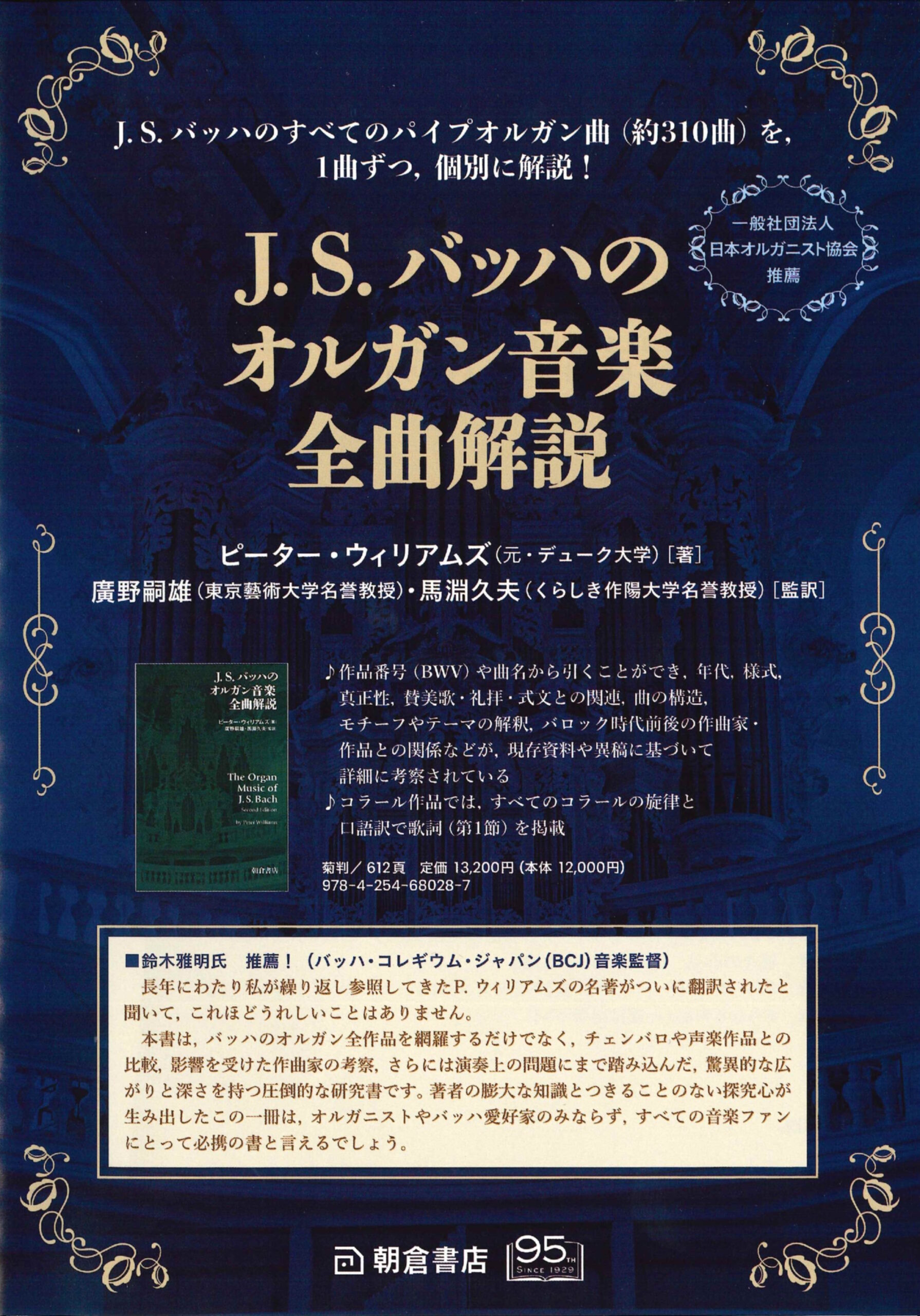 本書は、不朽の世界的名著The Organ Music of J. S. Bach I & II, Cambridge University Press (1980年) の改訂版 (Second edition) の全訳である。著者ピーター・ウィリアムズ (1937-2016)は、オルガンとバッハのオルガン作品の研究において計り知れない貢献をした音楽学者、チェンバリスト、オルガニストであった。最初に刊行された全3巻 (1980, 1980, 1984年) のうち、1996~2000年に刊行された全巻のドイツ語訳を経て、オルガン音楽そのものを扱う第1巻、第2巻を1冊に集約した本改訂版が刊行されたのは2003年である。