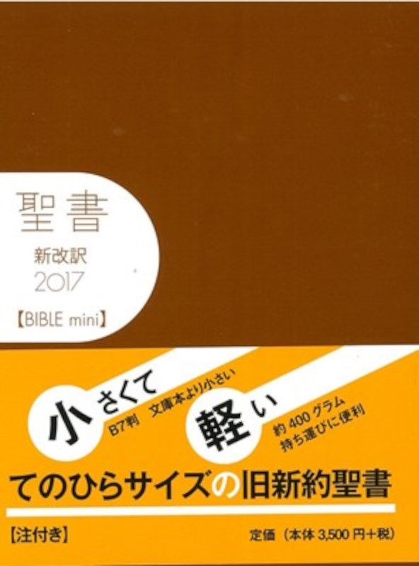 小さくて(B7判・文庫本より小さい)、軽い(約400グラム・持ち運びに便利)、てのひらサイズの旧新約聖書